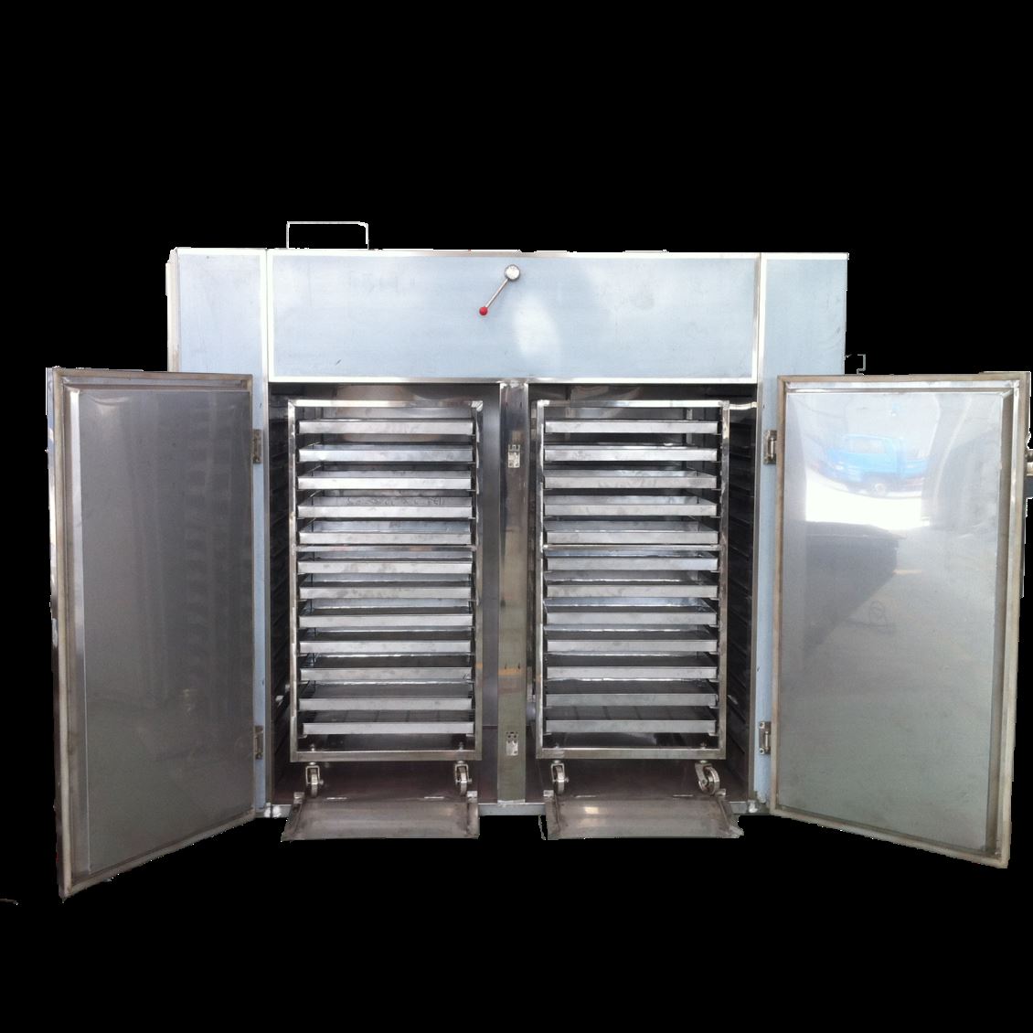 这是一种可装拆箱体式的设备,还可以分为离心风机、轴流风机的系列,它的热源是利用蒸汽和电对加热器进行经过加热,感受到热量以后箱内的大量热风进行不断的循环,箱外的风也会不断从进风口进入箱内,然后再通过排湿口排出,这样传热效果也不断的在提高,箱内物料的水分也随着这些热量再逐渐减少从而达到除湿的效果。我公司生产的烘箱不同于别家,这个产品我们给它配用了低噪音、耐高温轴流风机和自动控温系统,整个循环系统全封闭。看了我们给您提供的产品简介,您现在是否对它有了进一步的了解呢?如果您对我们公司这个产品感兴趣的话,我们热烈欢迎您的来电,同时也请您继续关注我公司为各位更新的文章,谢谢!
